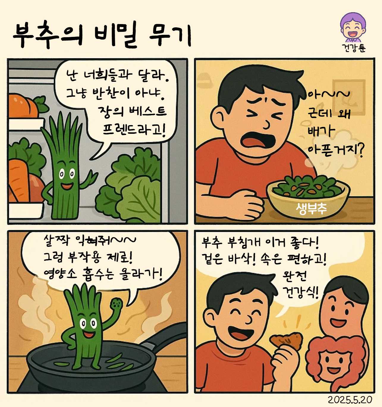 특히 생부추를 과하게 먹으면 복통이나 설사를 유발할 수 있으므로 적당량 섭취가 중요합니다.